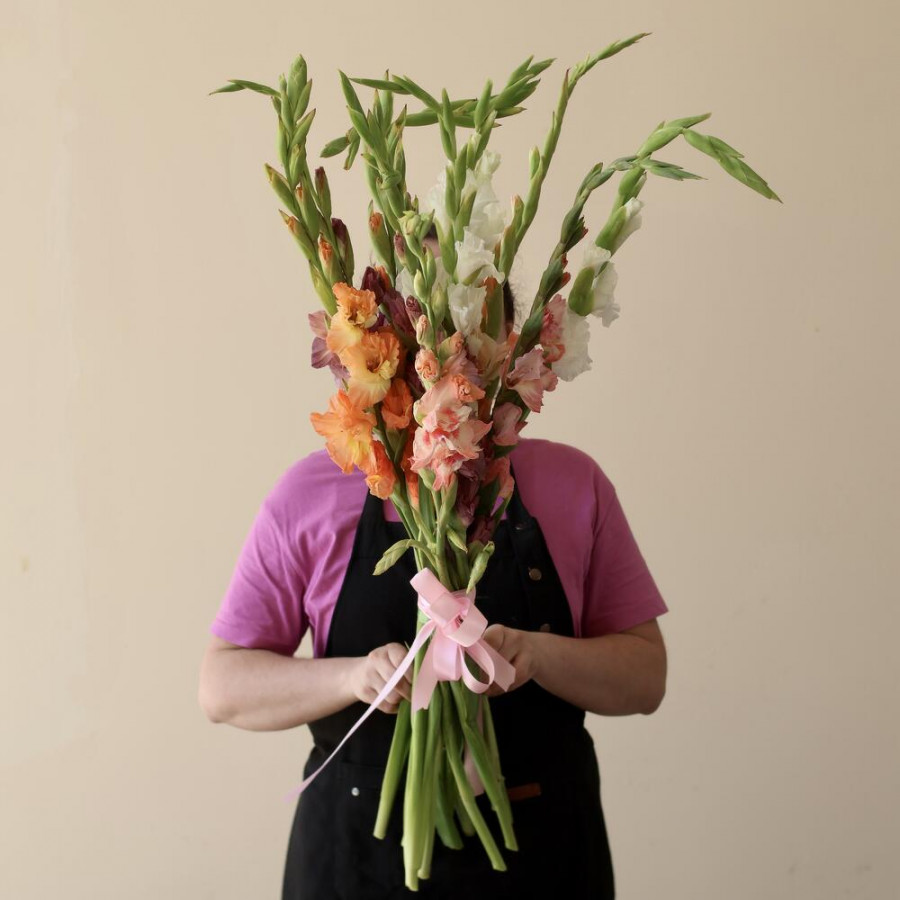 Букет из 11 разноцветных гладиолусов