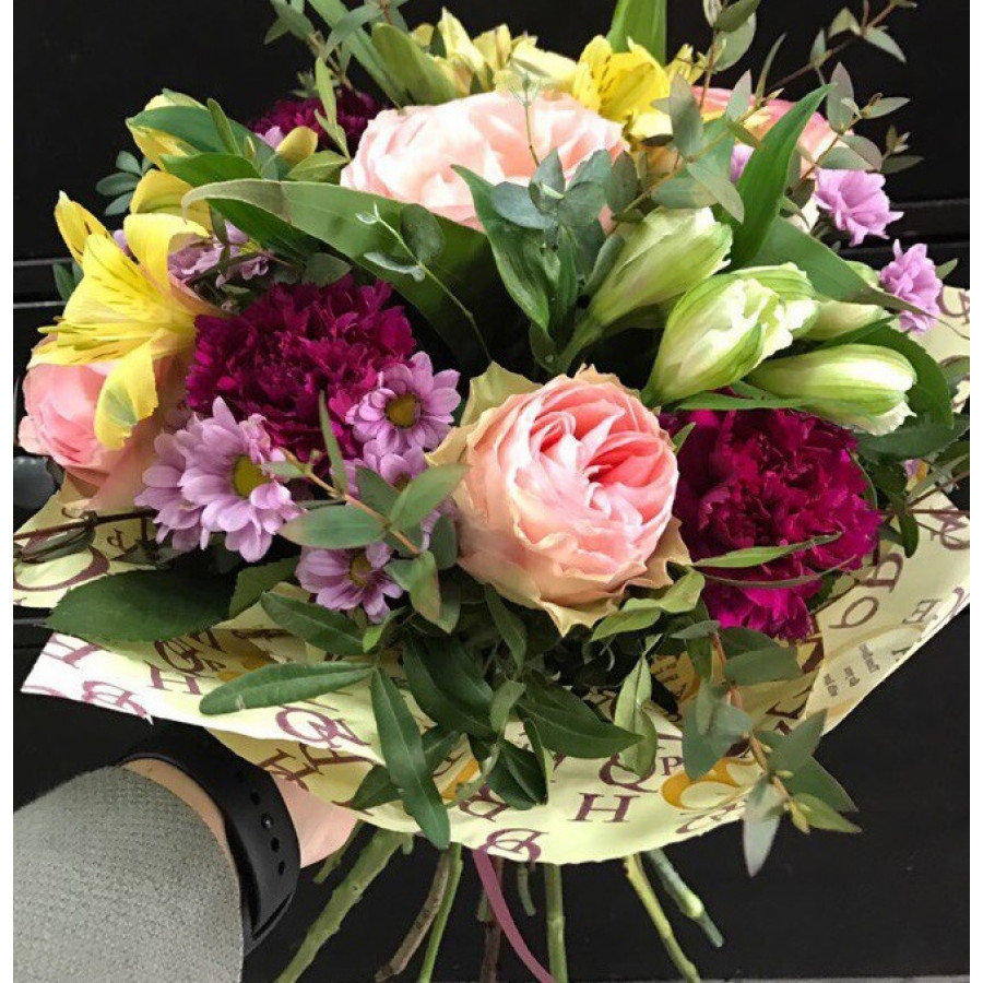 Перед выездом курьера пришлём фото свежесобранного букета, чтобы вы были спокойны