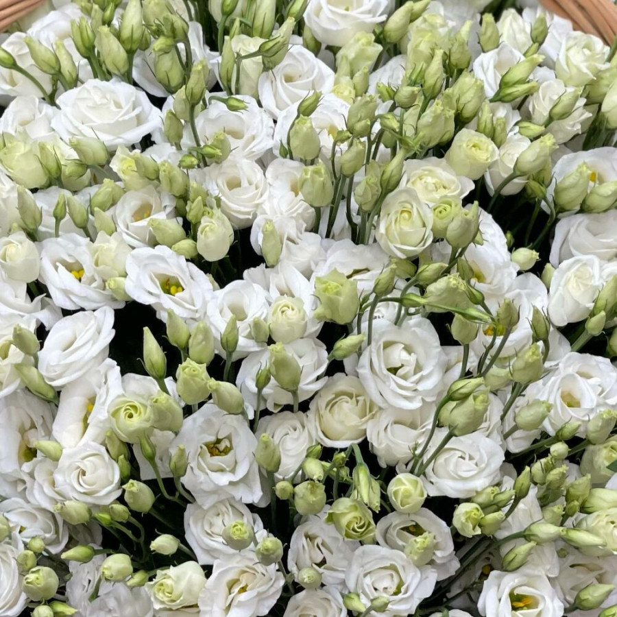Корзина из 101 белой эустомы в Ликино-Дулёво