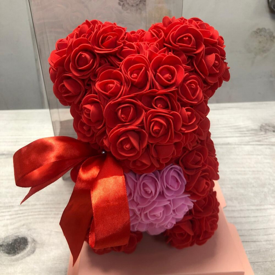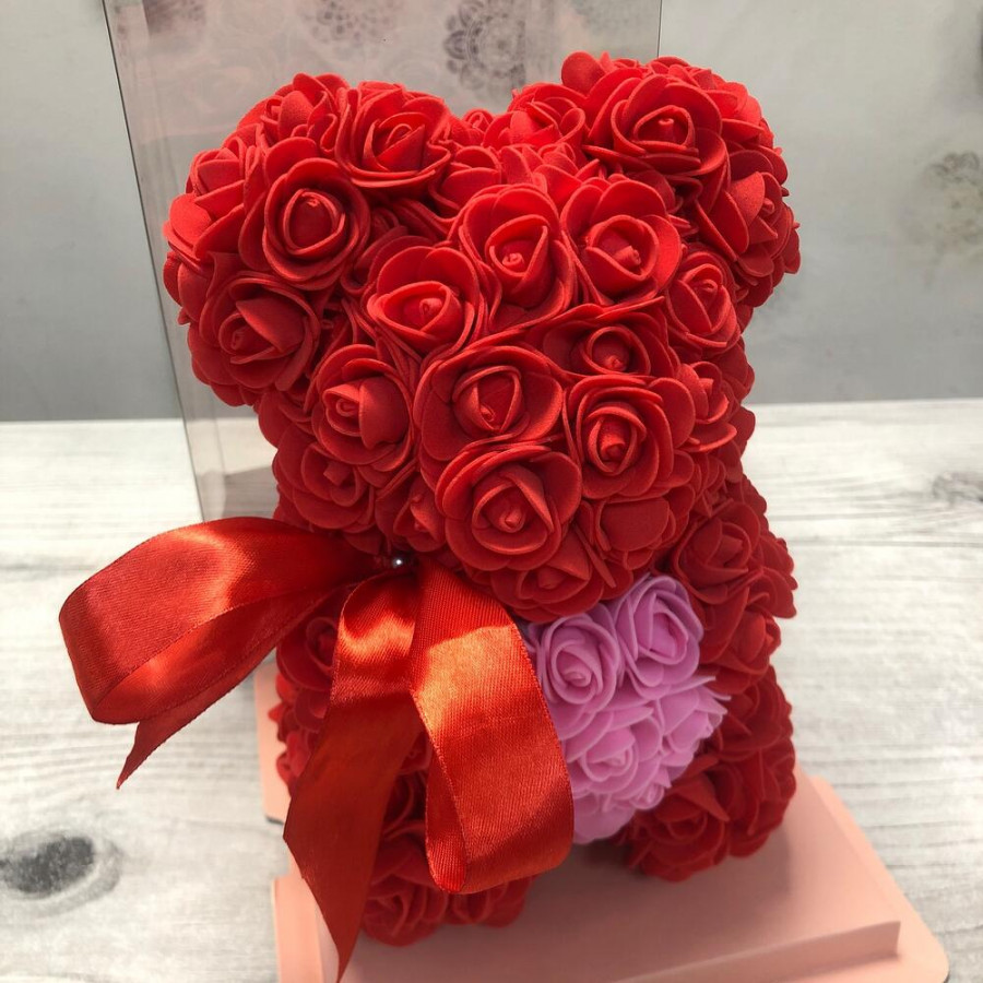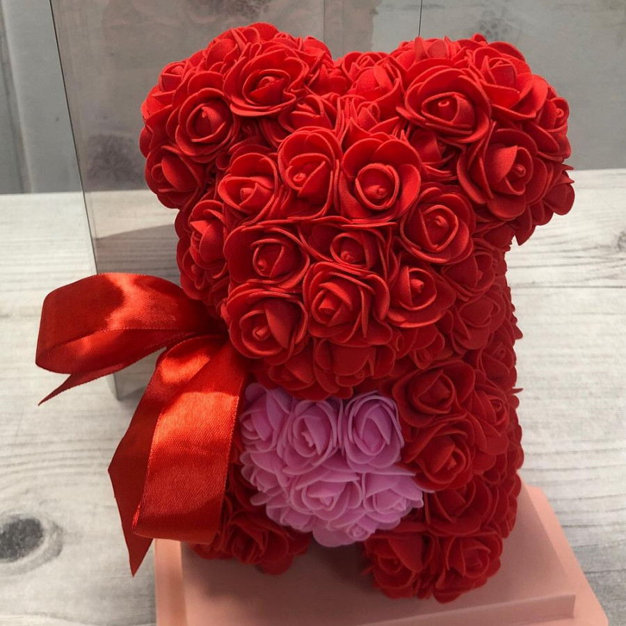Красный мишка из роз в Ликино-Дулёво